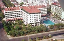jūros kranto. Vienas 6 aukštų pastatas: 416 standartinių kambarių (maks. 3+1 žm., 27 kv m). Atsiskaityti galima šiomis kreditinėmis kortelėmis : Visa, Master, Euro. Apgyvendinimas su gyvūnais: neįmanomas. Tel. (242) 527 51 76, faks. (242) 527 51 94. Kambariuose: vonia plaukų džiovintuvas centrinis oro kondicionierius televizorius telefonas mini baras (gaivieji gėrimai) seifas (kambaryje - nemokamai) kiliminė danga balkonas kambariai tvarkomi kiekvieną dieną patalynė keičiama 3 kartus per savaitę Viešbučio teritorijoje: pagrindinis restoranas dietinis maitinimas 6 barai 2 atviri baseinai uždaras baseinas gydytojo paslaugos kirpykla drabužių valymo paslaugos konferencijų salė parduotuvės grožio salonas valiutų keitykla automobilių nuoma automobilių stovėjimo aikštelė vandens kalneliai Vaikams: bufetas 2 baseinai (atviras ir uždaras) žaidimų aikštelė mini klubas (4-12 metų) auklė Pramogos ir sportas: Nemokamai: treniruoklių salė aerobika sauna turkiška pirtis šou diskoteka paplūdimio tinklinis 2 teniso kortai stalo tenisas biliardas smiginis būriavimas kanojos vandens dviračiai Už papildomą mokestį: sūkurinės vonios masažas teniso raketės ir kamuoliukai žaidimų automatai nardymo kursai vandens slidės parašiutai vandens motociklai Paplūdimys: nuosavas smulkaus žvyro ir smėlio paplūdimys. Skėčiai, gultai, čiužiniai, paplūdimio rankšluosčiai - nemokamai. Prie baseino: skėčiai, gultai, čiužiniai - nemokamai.