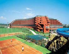 jūros kranto. Šeši 5 aukštų pastatai: 630 standartinių kambarių (maks. 3+1 žm., 25 kv.m), 20 šeimyninių kambarių (2 miegamieji su durimis, maks. 6 žm., 40 kv.m). Atsiskaityti galima šiomis kreditinėmis kortelėmis: Visa, Master, Euro. Apgyvendinimas su gyvūnais: neįmanomas. Tel. (242) 527 48 50, faks. (242) 527 40 72. Kambariuose: vonia plaukų džiovintuvas centrinis oro kondicionierius telefonas mini baras (gaivinamieji gėrimai) seifas (kambaryje - nemokamai) kiliminė danga balkonas kambariai tvarkomi kiekvieną dieną patalynė keičiama 3 kartus per savaitę Viešbučio teritorijoje: 2 restoranai 4 restoranai a la carte dietinė mityba 5 barai 2 atviri baseinai gydytojo paslaugos kirpykla drabužių valymo paslaugos parduotuvės valiutų keitykla automobilių nuoma automobilių stovėjimo aikštelė 5 vandens kalneliai Vaikams: bufetas 2 baseinai žaidimų aikštelė mini klubas (4-12 metų) auklė Pramogos ir sportas: Nemokamai: treniruoklių salė aerobika sauna turkiška pirtis sūkurinės vonios šou diskoteka paplūdimio tinklinis 2 teniso kortai stalo tenisas būriavimas kanojos vandens dviračiai Už papildomą mokestį: masažas teniso raketės ir kamuoliukai biliardas žaidimų automatai būriavimo mokyklanardymo kursai vandens slidės parašiutai vandens motociklai Paplūdimys: nuosavas smulkaus žvyro ir smėlio paplūdimys. Skėčiai, gultai, čiužiniai, paplūdimio rankšluosčiai - nemokamai. Prie baseino: skėčiai, gultai, čiužiniai - nemokamai.